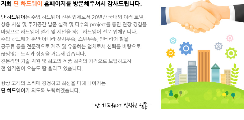 업체명: 단하드웨어 | 주소 : 서울특별시 성북구 화랑로5길 30 , 1층(하월곡동) 대표번호 : 02-941-0120 | 팩스: 02-941-0121, 050-4171-2101 | 이메일: dan0002@hanmail.net | 사업자등록번호: 717-52-00242 Copyright © 단미. All Rights Reserved.